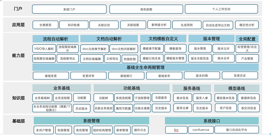 基于流程基线、、、功能基线、、、服务基线、、模型基线等,,,梳理信息之间的关系,,,分企业级、、、、系统级、、、、功能级结构化展示
