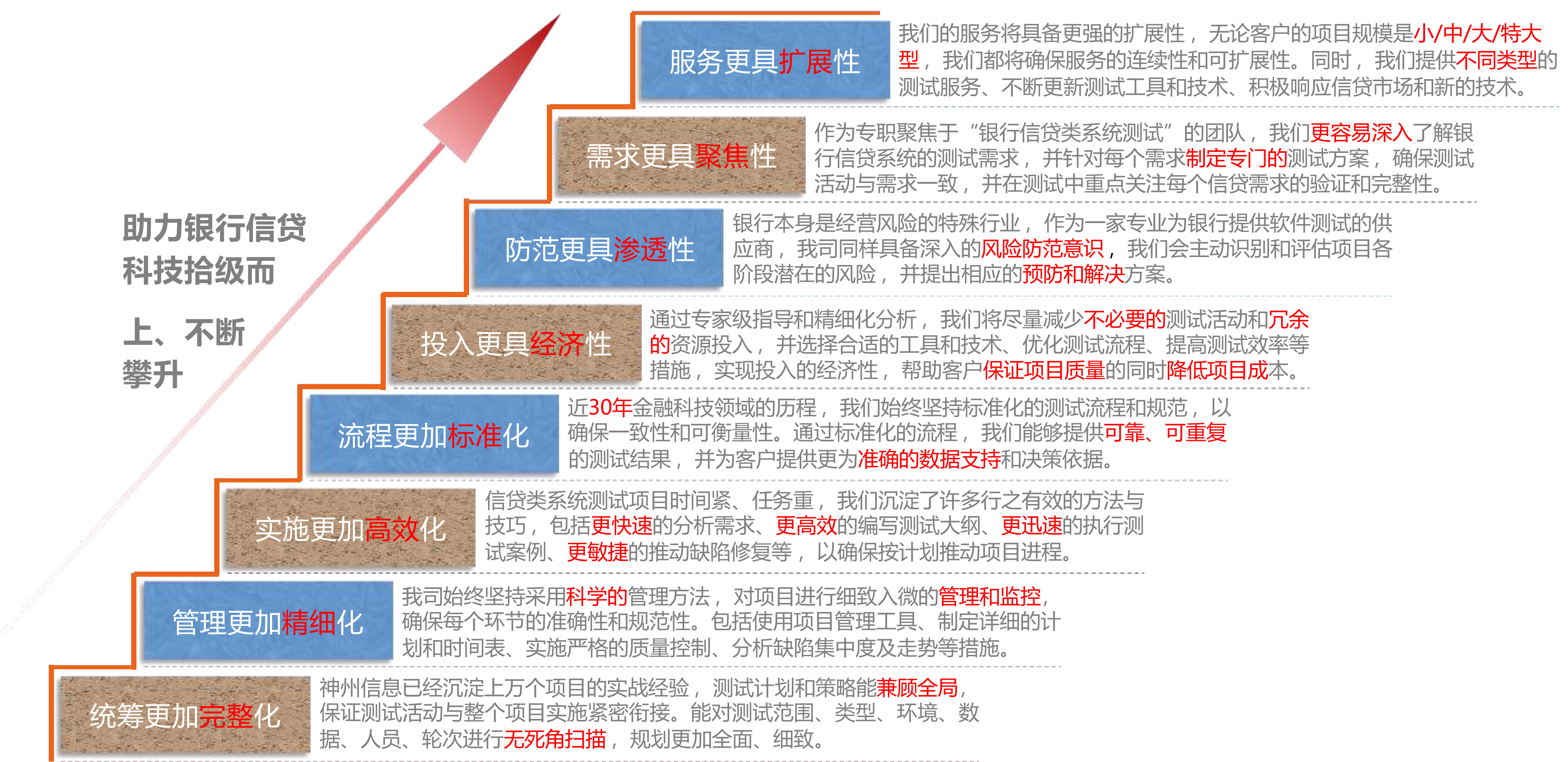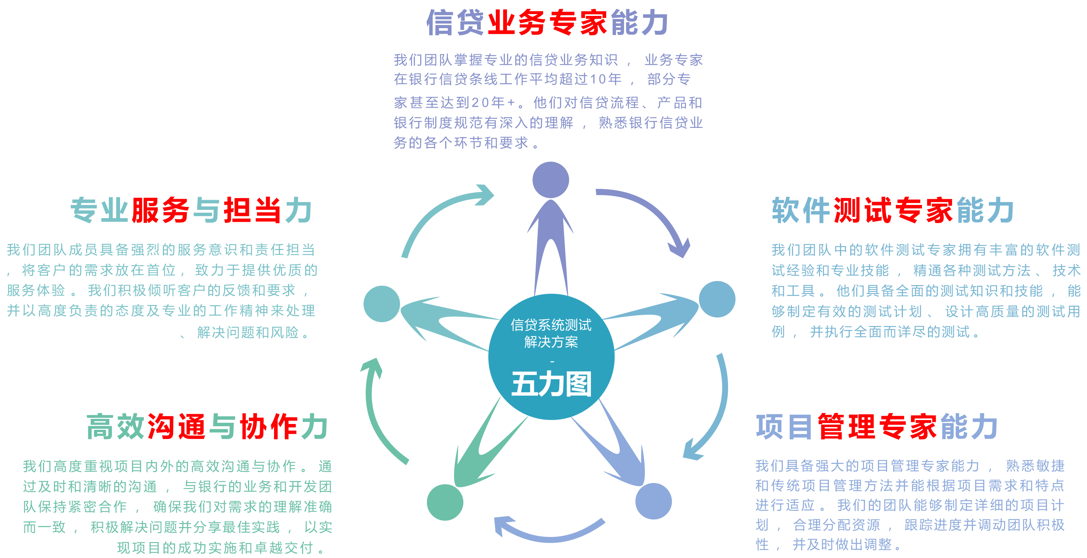 完善的测试管理体系,,,,及优质、、、、全面的测试服务,,,,以高标准监控项目实施各个阶段,,确保信贷类系统测试项目得以高质量的完成。。
