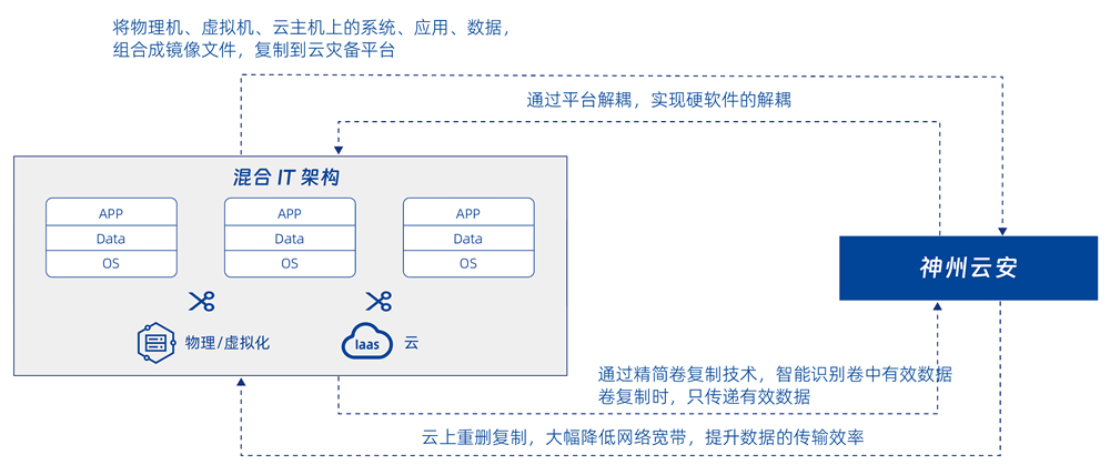 集备份、、、、容灾功能为一体的云灾备平台产品,,,将需要灾备保护的操作系统、、、、应用、、、数据打包成一个云镜像文件,,,,灵活快速的复制到云灾备平台,,为用户的混合 IT 环境提供统一的灾备保护。。。。